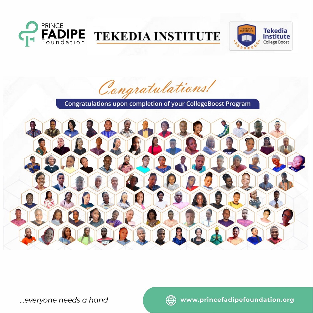 As a non-profit organization that is dedicated to helping underprivilege children and young adults in Nigeria, Africa, and the world at large, the Prince Fadipe Foundation (PFF) has sponsored 100 students for a Tekedia CollegeBoost programme, an innovative scheme by Tekedia Institute located in Boston, USA. This partnership provides education for young adults with a passion for business and entrepreneurship, encouraging them to pursue careers in the creati...