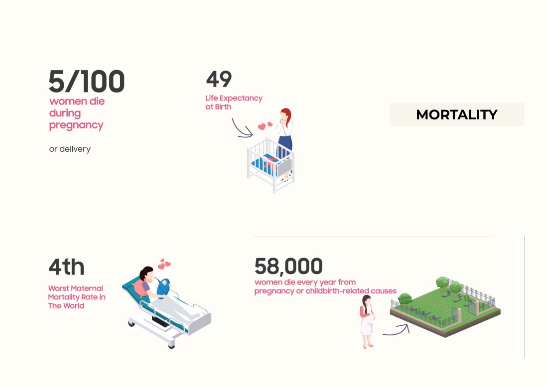 - 4th Worst Maternal Mortality Rate in The World: 814 deaths/100,000 live births – CIA/World Fact Book